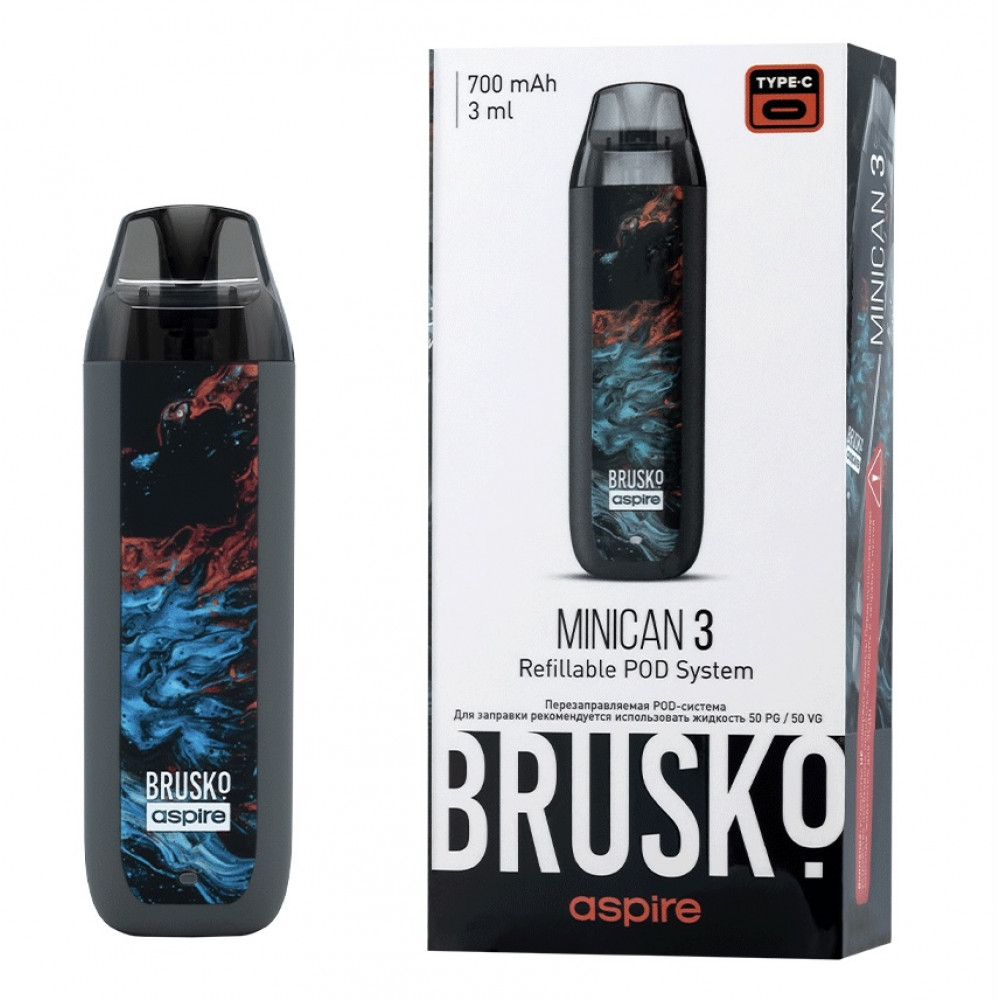 Перезаправляемая Под-Система Бруско Миникан 3 (Brusko Minican 3) 700 mah, Серый Флюид - купить в Лосино-Петровском